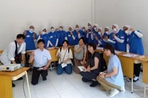 3日目の午前は、病院併設の大学を訪問。 インドネシア国内の看護系学生の現状や実習室の見学などをさせて頂きました。 講堂に集まっていた学生達の明るさに元気をもらえ、介護の現場で活躍する姿が目に浮かびました。